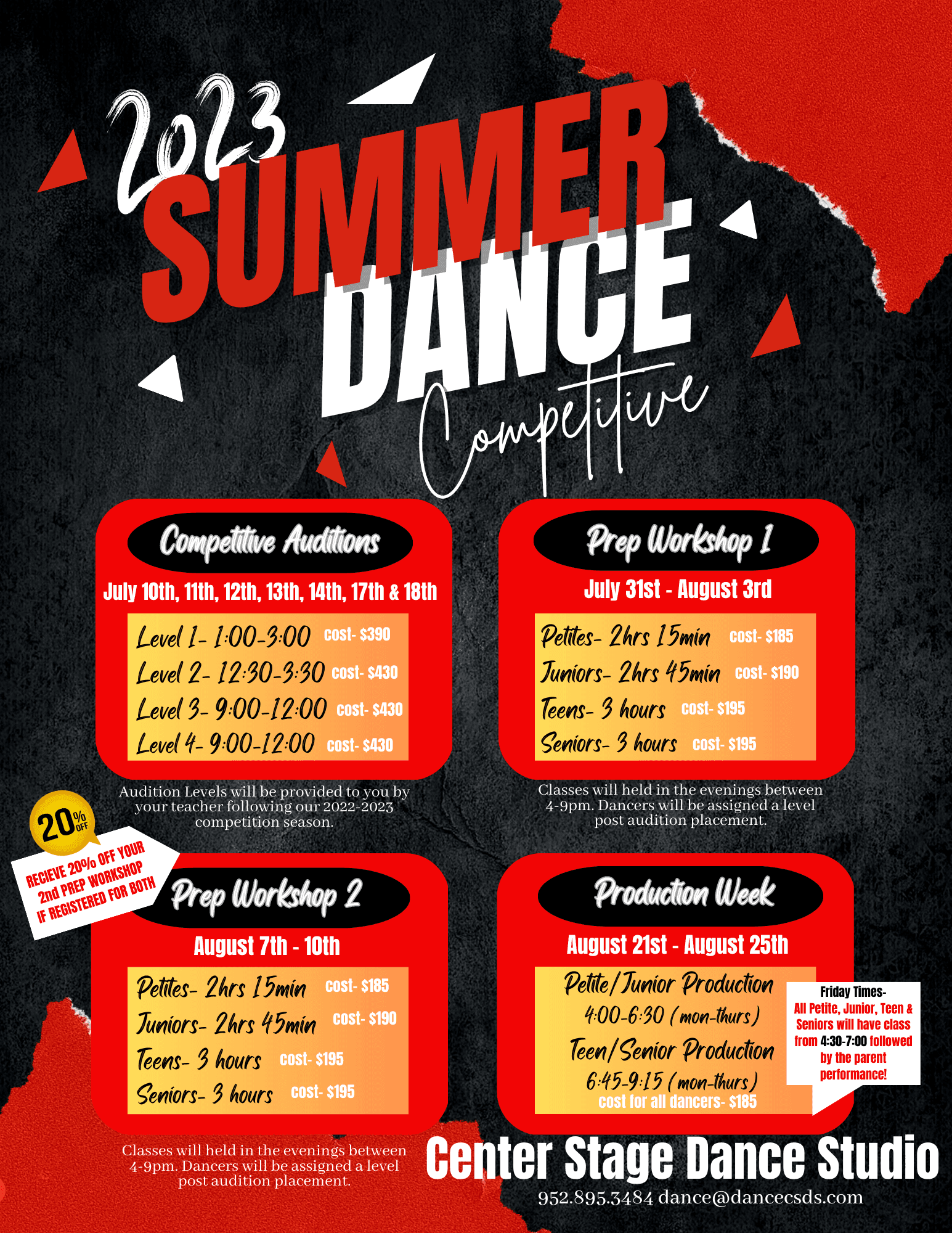 Center Stage Dance Studio has 6 state of the art dance floors, 17,000 square feet facility...